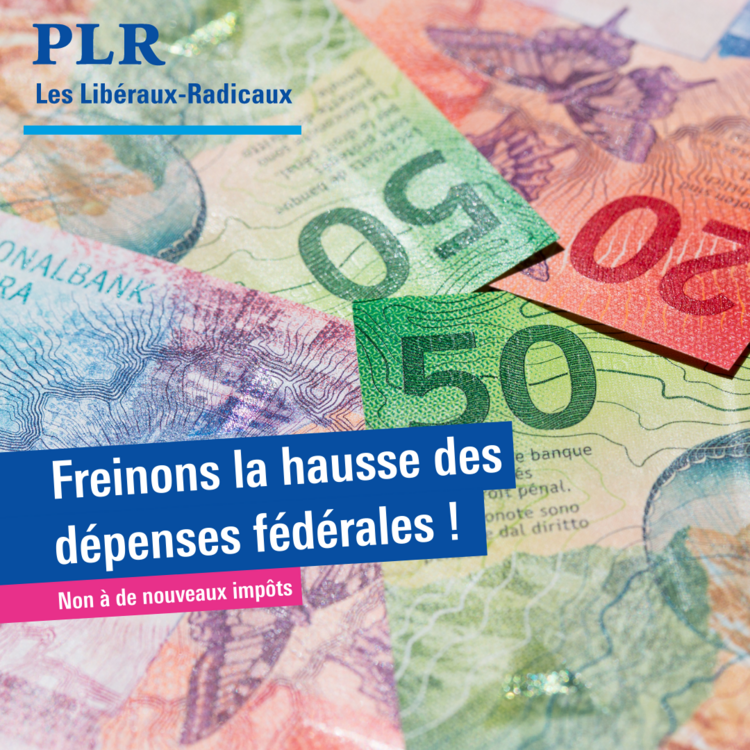 Le groupe PLR soutient les propositions du Conseil fédéral pour limiter la hausse continue des dépenses fédérales. En outre, le PLR s'oppose à de nouveaux impôts et de nouvelles taxes.