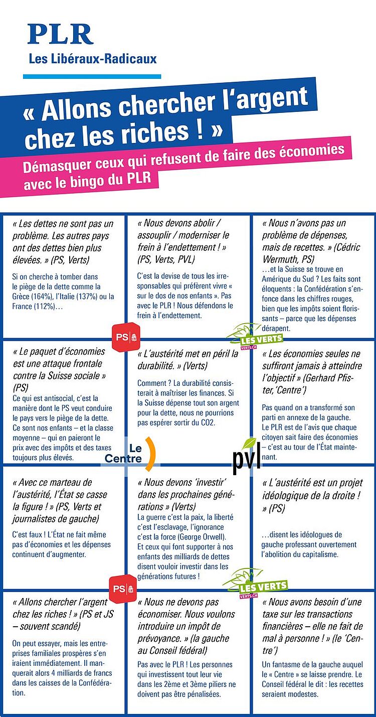 Comment reconnaître un dépensier ? C'est très simple : avec le bingo du PLR.